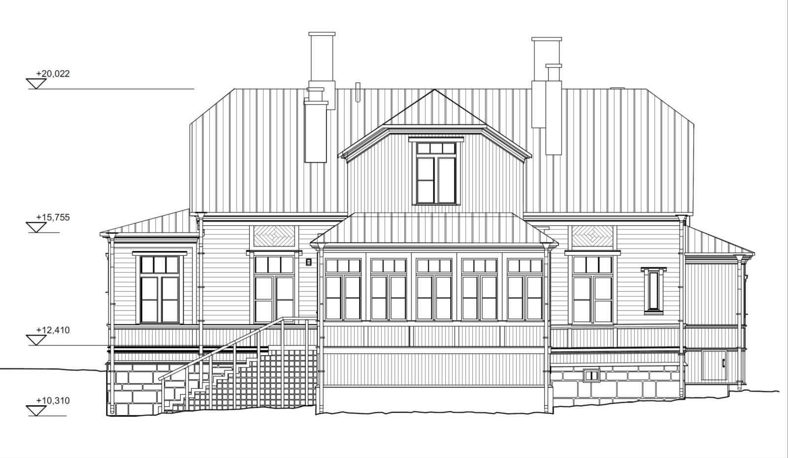 Kohde mitattiin laserkeilaamalla ja siitä tuotettiin nykytilannetta vastaava pistepilviaineisto. Mittausaineiston pohjalta laadittiin YTV osan 2 tarkkuustason 2 mukainen lähtötietomalli, jota tarkennettiin julkisivun listoitusten ja julkisivuvarusteiden osalta YTV osan 2 tarkkuustasoon 3.
